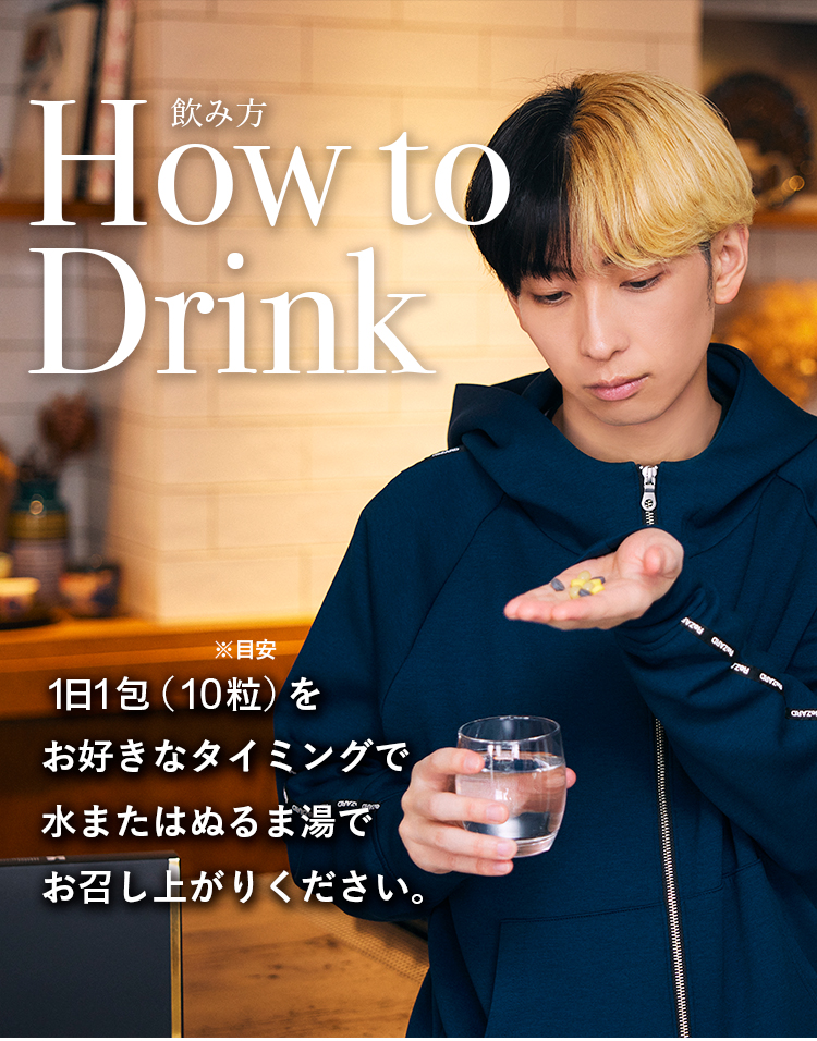 1日1包(目安)をお好きなタイミングでお召し上がりください。朝起きてすぐや夜寝る前などタイミングを決めておくと飲み忘れを防げます。