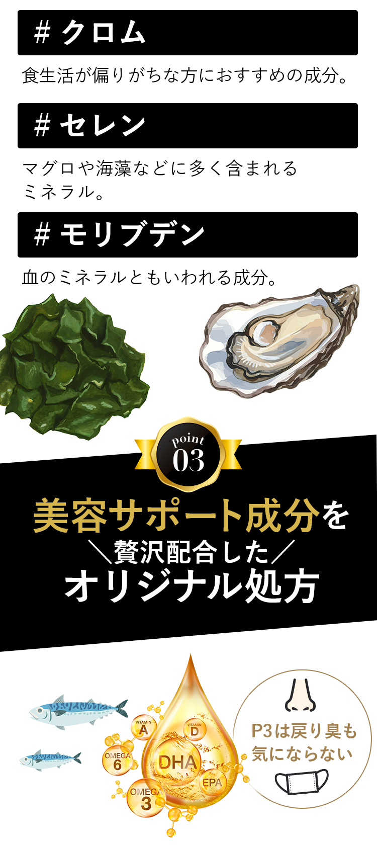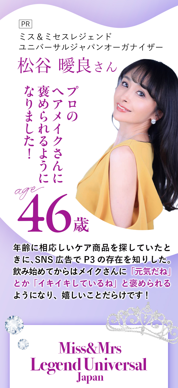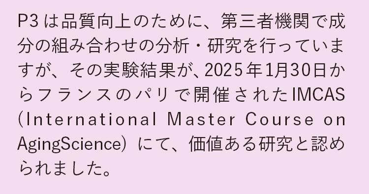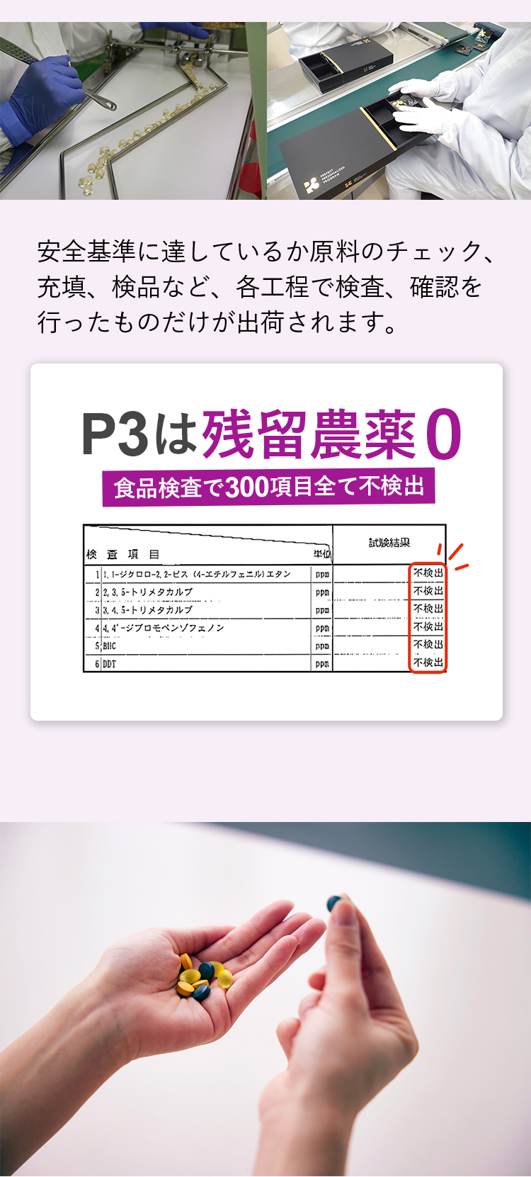 P3は健康食品のため、妊娠中にご飲用いただいても問題ございませんが、妊娠中、授乳中の方は掛かりつけの医師にご相談の上お召し上がりください。