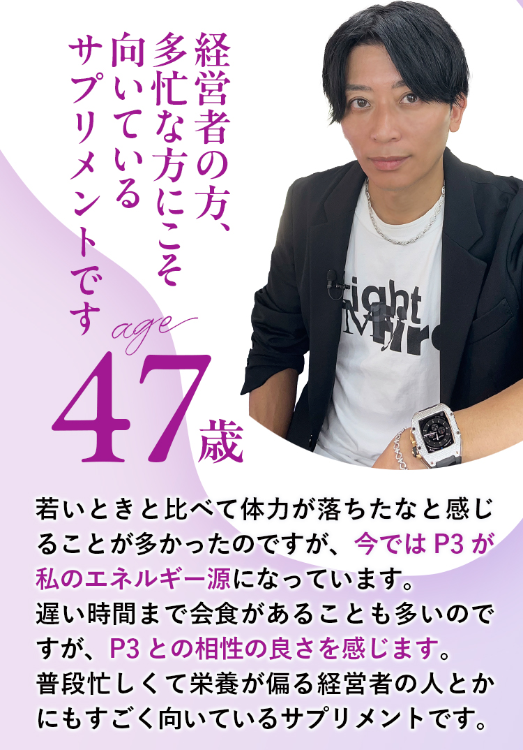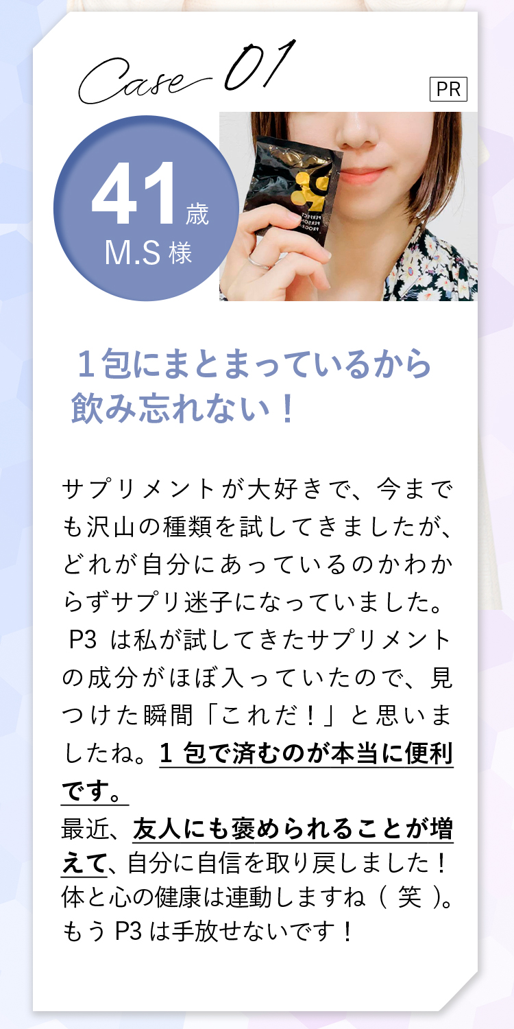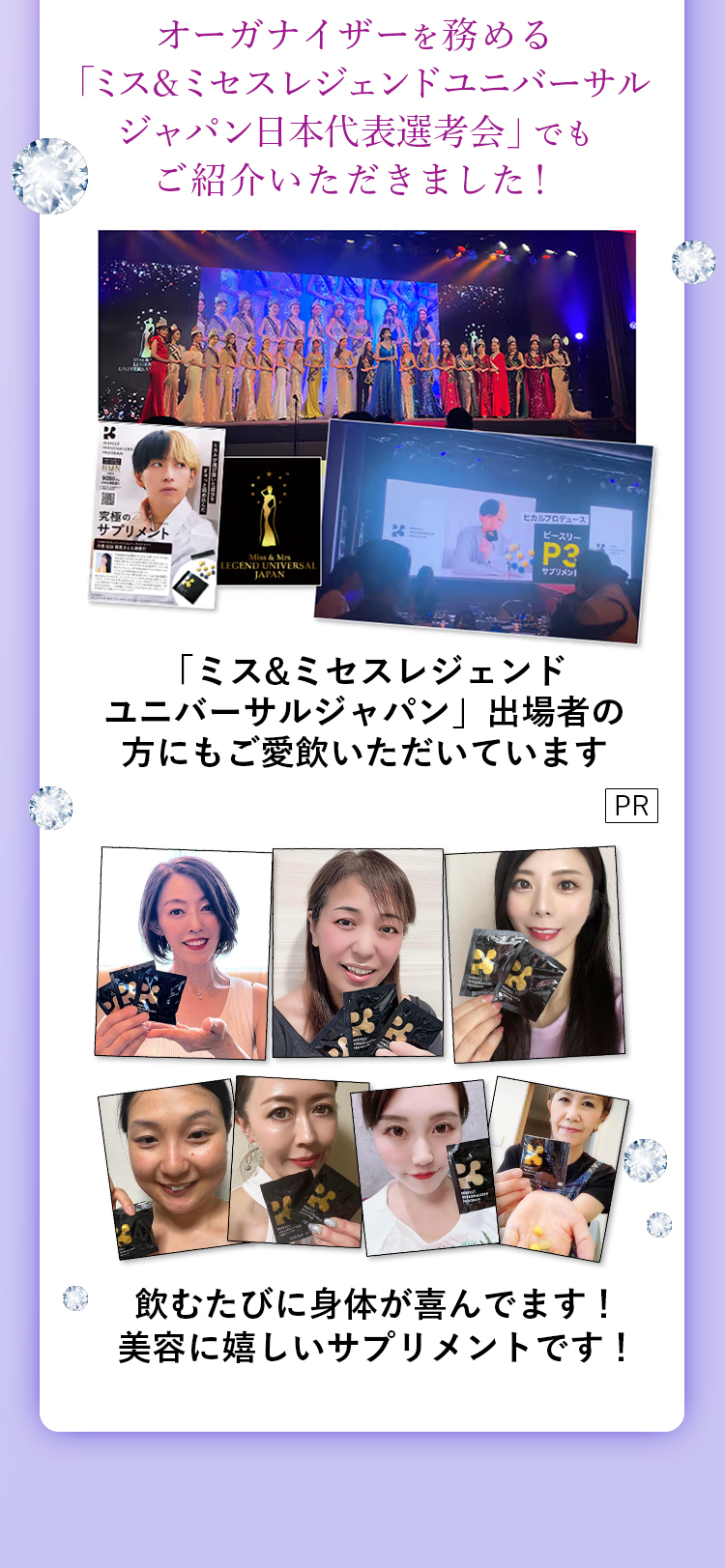 いつまでも若々しくいたい方、不規則な食生活を送っている方、忙しい毎日を送っている方、美容の調子が気になる方はもちろん男女問わず全ての現代人におすすめです。