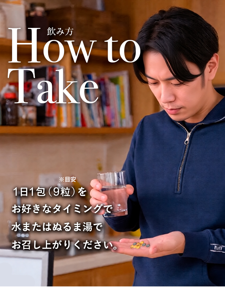 1日1包(目安)をお好きなタイミングでお召し上がりください。朝起きてすぐや夜寝る前などタイミングを決めておくと飲み忘れを防げます。